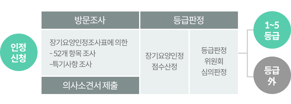 장기요양보험 가입자 및 그 피부양자나 의료급여수급권자 누구나 장기요양급여를 받을 수 있는 것은 아닙니다. 일정한 절차에 따라 장기요양급여를 받을 수 있는 권리(수급권)가 부여되는데 이를 장기요양인정이라고 합니다